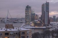 De Kop van Zuid tijdens zonsopkomst op een winterse dag.