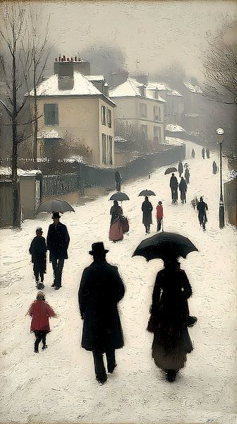Winter in bergdorp impressionisme