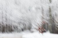Winterprik in de Averegten natuurgebied in de Kempen. Een foto van één van de mooie wandelpaden in het bos. De sneeuw op de bomen gaf een extra mooi effect voor de foto. De foto is gemaakt met meervoudige belichting alsook ICM ('Intentional Camera Movement') is een techniek rechtstreeks in de camera er komt geen software bij te pas. Een cool winter gevoel wat sneeuw maakt alles zo rustiger.