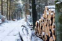Deze foto is gemaakt in een bos bij Ede. het gekapte hout en het onder gesneeuwde bospad geven een mooi winters weer weer.