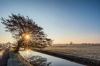 Opkomende winterzon in de Rijnenburgpolder bij Nieuwegein en Utrecht.