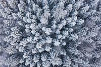 Luchtfoto van naaldbos in het Zwarte Woud bij Bad Wildbad in de winter.