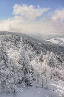 Uitzicht vanaf Schauinsland over het vers besneeuwde Zwarte Woud op een mooie wintermiddag.