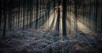 Zonlicht schijnt door de bomen 's ochtends in het bos