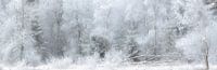 Een panorama foto van een winter landschap in het bos met sneeuw in het Dwingelderveld National Park in Drenthe. Een sfeervolle winter foto.