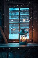 Zachte sneeuwvlokken dansen in het licht van een flikkerende lantaarn, terwijl de winterse kilte zachtjes door het raam naar binnen sijpelt. Dit harmonieuze tafereel brengt gezelligheid en nostalgie in elke woonkamer, waar het verlangen naar warmte en geborgenheid het hart verwarmt. Uitnodigend en romantisch - perfect voor rustige…