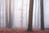 Mist in de winter geeft in een beukenbos zo'n sprookjesachtige sfeer