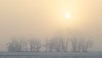 Een heerlijke zonsopkomst op een mooie koude mistige winter ochtend in de polder van de Alblasserwaard.