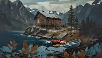 Winter rivierlandschap met hutNick Wendt Schuilplaats in de bergen - CollageNick Wendt