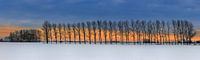 Een weids panorama beeld en uitzicht in de winter bij zonsondergang in de late namiddag tussen Winsum en Garnwerd in de provincie Groningen, Nederland.