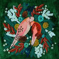 Koop dit bloemen kunstwerk Winter vogels tortel duifjes in het groen van Caroline Bonne Müller op canvas, aluminium dibond, (ingelijste) fotoprint, behang en ArtFrame, op maat geprint in Fine-Art kwaliteit.