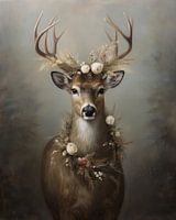 Winter Wonderland, een hert in een mistig bos met een bloemenkrans. Kies zelf het formaat en materiaal bij dit werk en maak er een echte blikvanger voor je interieur van!