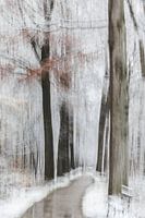 Winterprik in de Averegten natuurgebied in de Kempen. Een foto van één van de mooie wandelpaden in het bos. De sneeuw op de bomen gaf een extra mooi effect voor de foto. De foto is gemaakt met meervoudige belichting alsook ICM ('Intentional Camera Movement') is een techniek rechtstreeks in de camera er komt geen software bij…