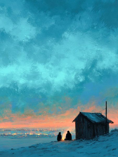 Dit beeld raakt aan een verlangen dat veel mensen herkennen: even weg van alles, maar niet alleen. Het idee van samen zijn in stilte, terwijl de wereld op afstand blijft. Een plek waar niets hoeft te gebeuren en waar tijd geen rol speelt.