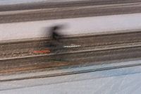 Ik nam deze foto van een fietser op een winteravond door het raam van onze flat, die aan een straat in het westen van Bern ligt. Ik hou van het onscherpe effect door de lange belichtingstijd en de compositie.