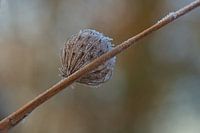 Winterbeeld van een met ijs bedekte verdorde bloembol van Jolanda de Jong-Jansen