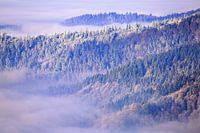 Uitzicht vanuit Horben op het mistige winterlandschap in Breisgau.