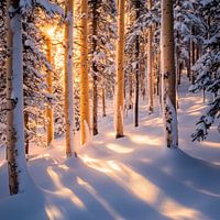 Er ontvouwt zich een winterwonderland waarin zachte lichtstralen door de besneeuwde bomen dansen. De verse en ongerepte sneeuw weerkaatst het warme licht en verleent het ijzige landschap een magische sfeer. Hier ontmoet de stilte van het bos de zachte omhelzing van de winterzon en nodigt uit tot contemplatie.