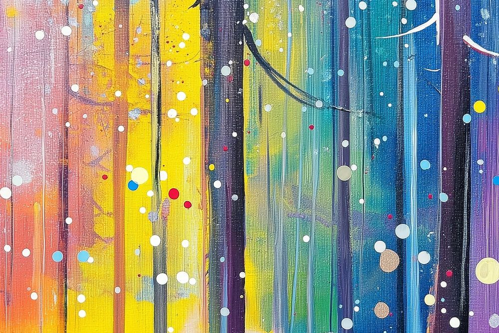 Kleurrijk winterbos in de stijl van een modern schilderij.