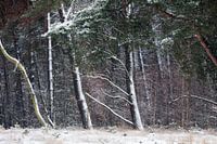 De sneeuw, tegen de takken gesmeten, zorgt voor een mooi contrast met de omgeving.