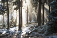 Winterbos en zonnestralen