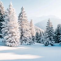Een winterwonderland ontvouwt zich: hoge, besneeuwde dennenbomen strekken zich uit naar de hemel, terwijl glooiende heuvels vaag in de verte verschijnen. De pluizige, witte sneeuw glinstert in het licht en verleent het landschap een rustgevende stilte die alleen wordt onderbroken door het occasionele kraken van takken. De tijd lijkt…