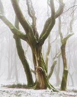 Imposante beuk in de koude mist gehuld, Frankrijk