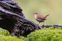 Winterkoninkje in het bos. Een parmantig klein vogeltje, dat altijd actief is.
