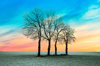 winterlandschap met 4 eenzame bomen en lichte sneeuw, gemaakt omgeving Coevorden, Drenthe.