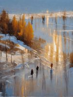 Ontdek de betovering van mijn koude koele abstracte winterlandschapsschildering. Laat de bevroren pracht met schaatsende en wandelende figuren op het ijs je ruimte vullen met winterse magie. Breng de serene schoonheid van de winter in huis met dit kunstwerk vol levendige momenten op een ijskoude dag. Dit schilderij is onderdeel van een serie. Zie mijn album genaamd abstract voor meer werken.