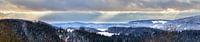 Panorama van het winterlandschap in het Beierse Woud in dramatisch avondlicht.