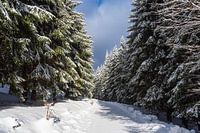 Landschap in de winter in het Thüringer Woud bij Schmiedefeld am Rennsteig.
