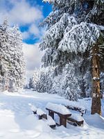 Landschap in de winter in het Thüringer Woud bij Schmiedefeld am Rennsteig.