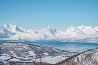 Koop de foto Winterlandschap met fjorden boven Tromso Noorwegen van Leo Schindzielorz op canvas, aluminium dibond, (ingelijste) fotoprint, behang en ArtFrame, op maat geprint in Fine-Art kwaliteit.