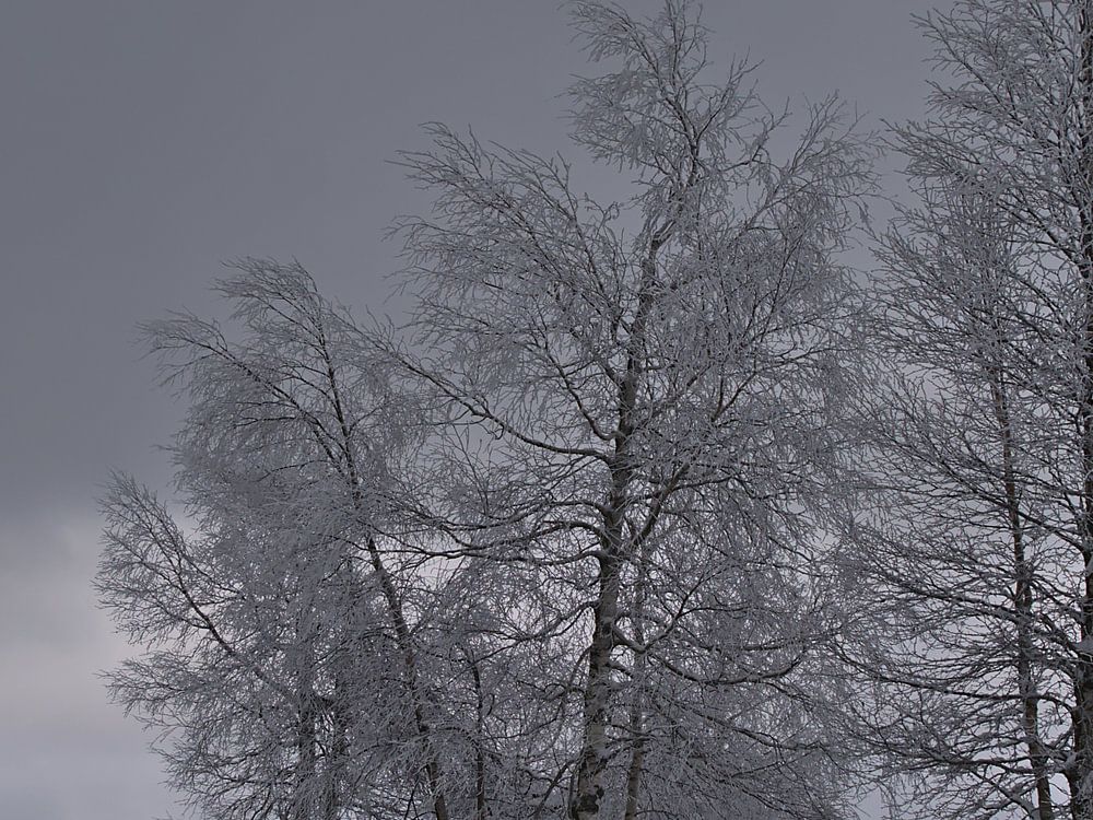Winterlandschap met kale berkenbomen in diepe sneeuw op de Schliffkopf in het Zwarte Woud, Duitsland onder bewolkte hemel.