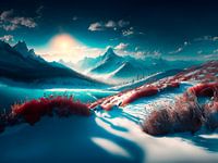 Koop dit landschapskunstwerk Winterlandschap met zon van Mustafa Kurnaz op canvas, aluminium dibond, (ingelijste) fotoprint, behang en ArtFrame, op maat geprint in Fine-Art kwaliteit.