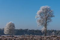 Bij de eerste vorst is het landschap tot ver in de ochtend prachtig wit. Deze foto is genomen bij Planken Wambuis op de Veluwe nabij Ede.