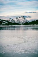 Winterlandschap bij de Vesteral eilanden in Noord-Noorwegen tijdens een mooie winterdag.