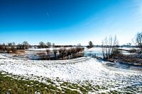Hollands winterlandschap met water dat in ijs is veranderd en de bevolking weer op de schaats gaan genieten van de winter.