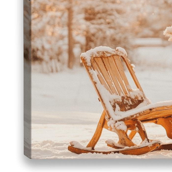 Gewikkeld in een zachte deken van sneeuw straalt het tafereel een vredige winterse warmte uit. De zacht gebogen houten schommel nodigt uit om te blijven hangen, terwijl de majestueuze, met sneeuw bedekte dennenbomen op de achtergrond verlegen zonnestralen opvangen. Een vredige plek waar de tijd lijkt stil te staan en de winterse kou…