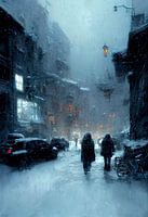 Koop dit schilderij Winternacht in de stad. Deel 4 van Maarten Knops als reproductie op canvas, aluminium dibond, (ingelijste) fotoprint, behang en ArtFrame, op maat geprint in Fine-Art kwaliteit.