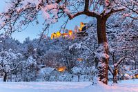 Uitzicht op het kasteel en de kloosterruïne Oybin