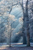 Het was een koude winterochtend aan het begin van de winter. Toen ik aan het einde van de ochtend terugliep scheen de zon prachtig door de licht berijpte bomen.