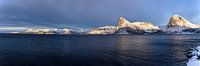 Senja is een eiland in Noord Noorwegen. Het is het een na grootste eiland en is sinds kort bekend om zijn prachtige landschappen. Hier zien we het eiland onder een dik pak sneeuw.