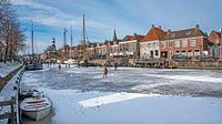 Winterpret op de bevroren rivier de Ee in Dokkum