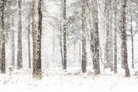 Natuurgebied Herperduin een ca. 400ha. groot heide en stuifzandgebied wat onderdeel uit maakt van natuurgebied De Maashorst in de provincie Noord-Brabant. Winter in januari 2026 mooie zachte sneeuwvlokken tussen de naaldbomen.
