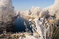 Het inundatiekanaal bij Tiel in de winter vanaf de brug in de Ophemertsedijk. Onderdeel van de nieuwe Hollandse waterlinie.