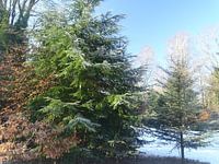 Besneeuwde boomtoppen en een ijsblauwe lucht maken samen dit mooie plaatje.