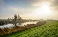 Winterzonlicht boven de Zalkerdijk van de IJssel nabij het dorp Zalk.