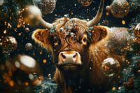 Winterse Betovering - Hooglander tussen Kerstlichtjes van Eva Lee
